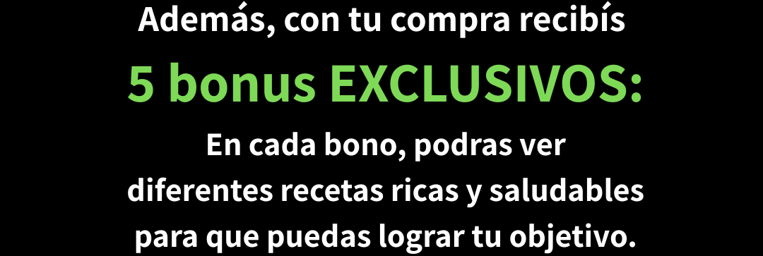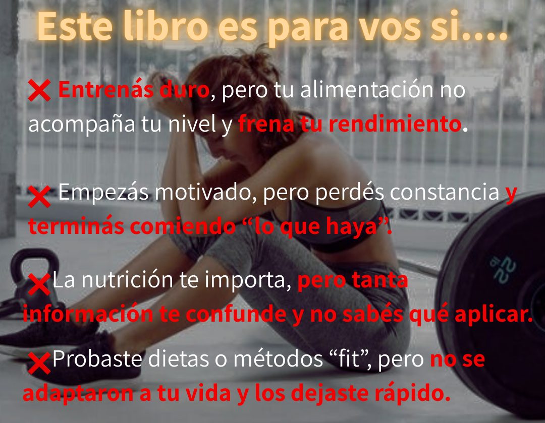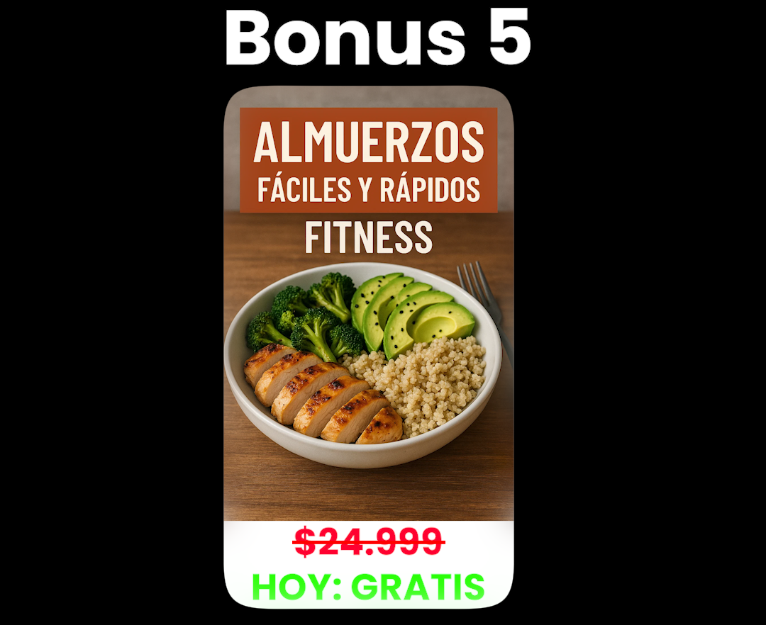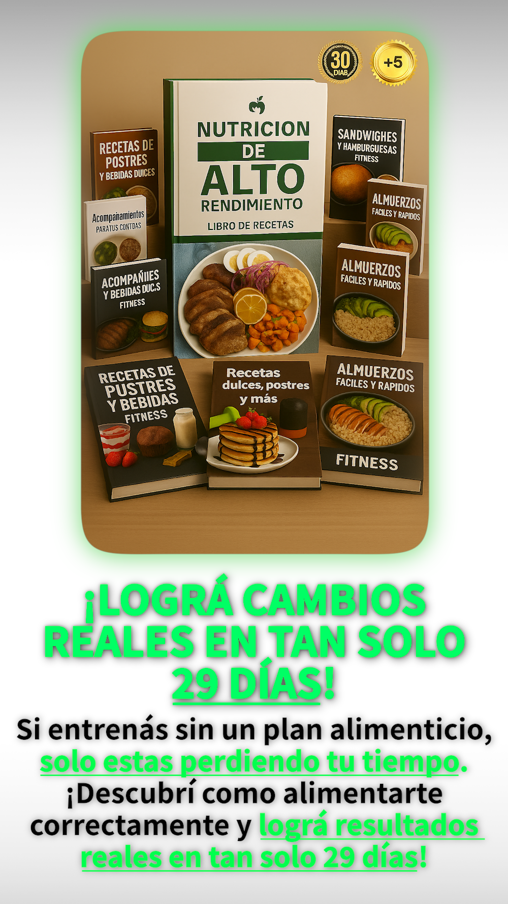 El pack incluye el libro completo de Alimentación de Alto Rendimiento, con principios, guías prácticas, planes de comidas y herramientas para mejorar tu energía, composición corporal y rendimiento físico. Con la compra del libro principal te vendrán incluidos 5 bonus con recetas simples, rápidas y saludables.